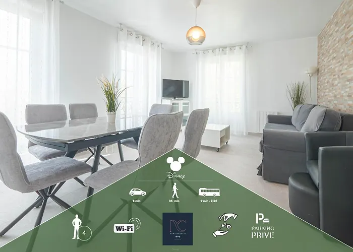 1-slaapkamer *Disneyland-Paris*4Pers, Wifi, Parking ligt in Serris op circa 15 minuten lopen van het Aquarium Sea Life Paris Val D'Europe en biedt een uitzicht op de stad.